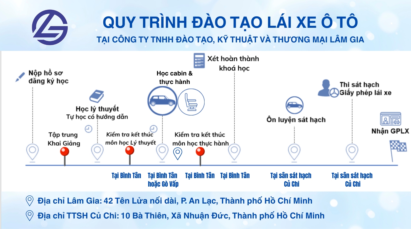 Công ty TNHH Đào tạo Kỹ thuật Thương mại Lâm Gia thông báo tuyển sinh các khóa học lái xe ô tô để đáp ứng nhu cầu học thi lấy bằng của nhiều học viên trên địa bàn khu vực TP. Hồ Chí Minh và các khu vực lân cận.